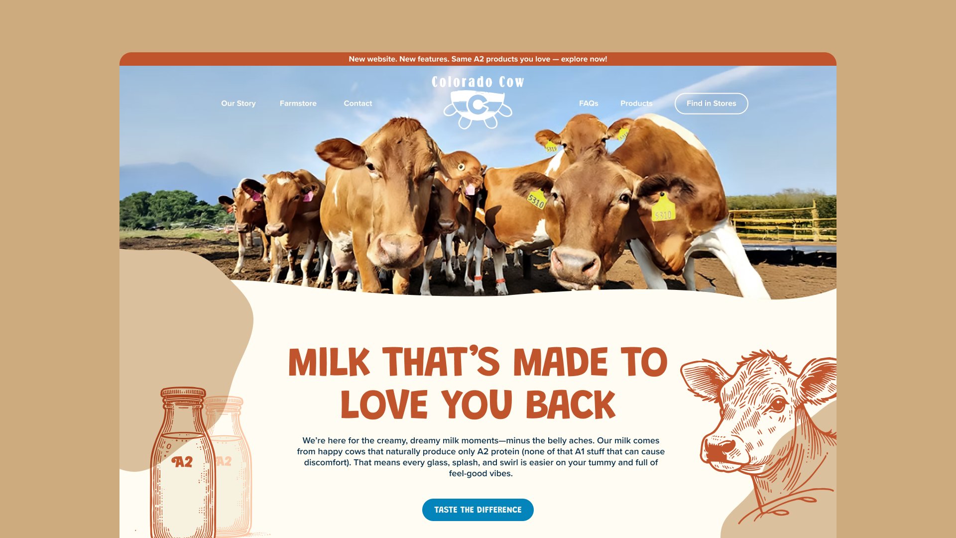We rebuilt coloradocow.com, launching the new site on August 17, 2025. The previous digital presence didn’t fully reflect the quality of the product or the strength of the brand. The new site leads with emotion, not explanation. It clearly educates consumers about A2 milk by telling the farm’s story with clarity and warmth.