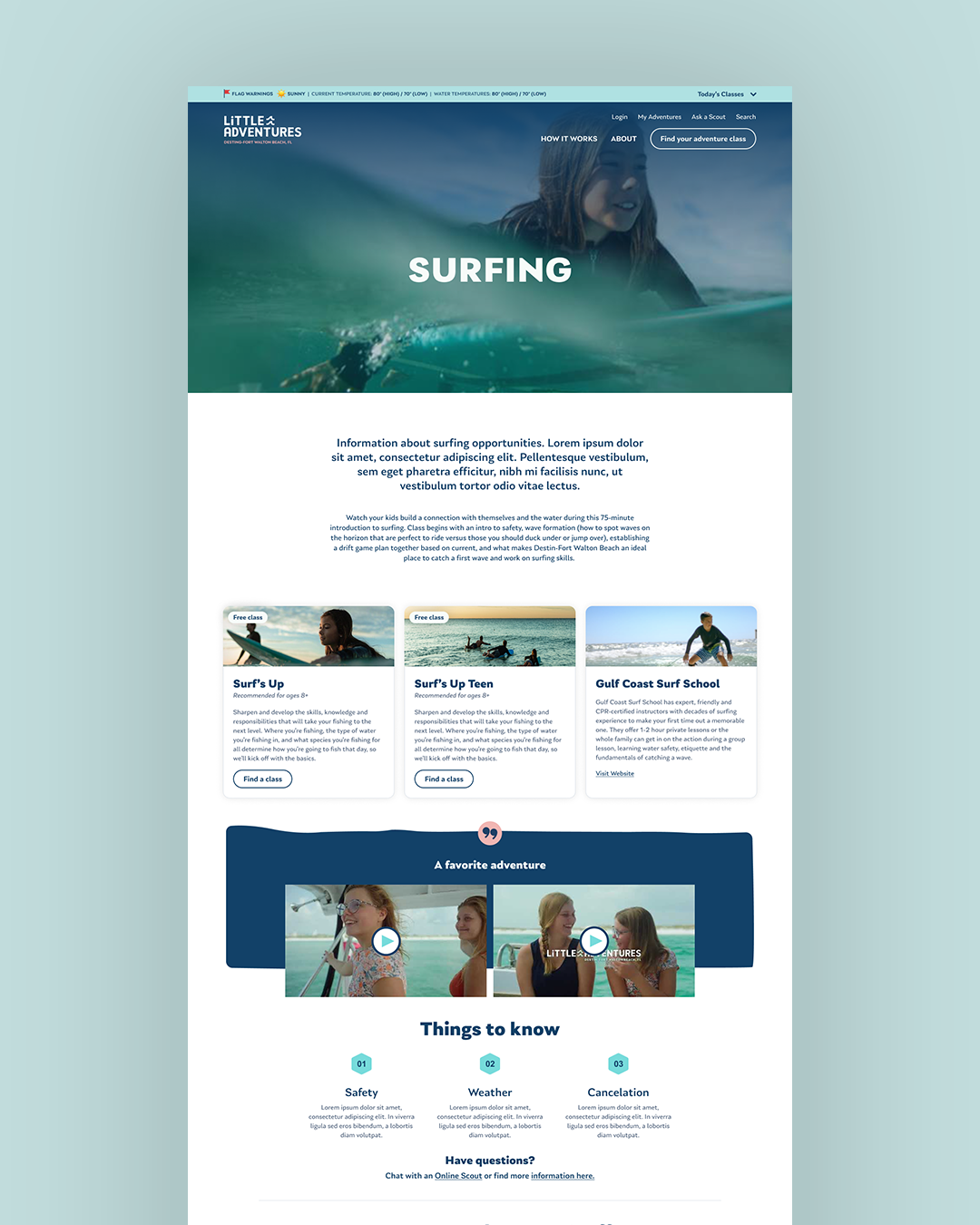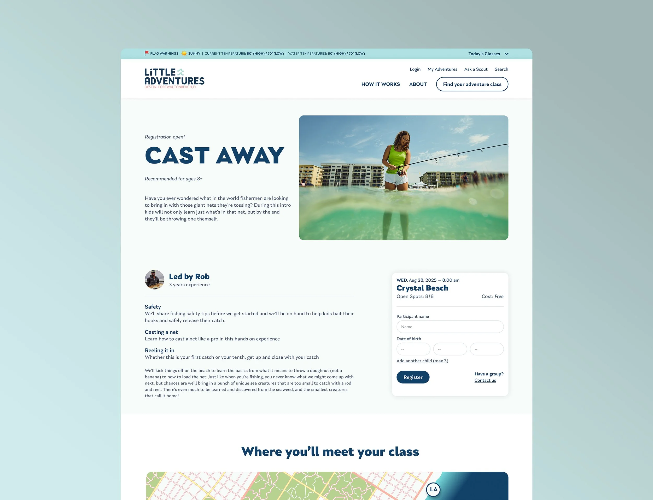 By aligning UX and messaging with Little Adventures’ core values—empowerment, nature, and family-centered growth—the site invites families to do more than relax. It encourages them to try something new—and leave more confident than they arrived.